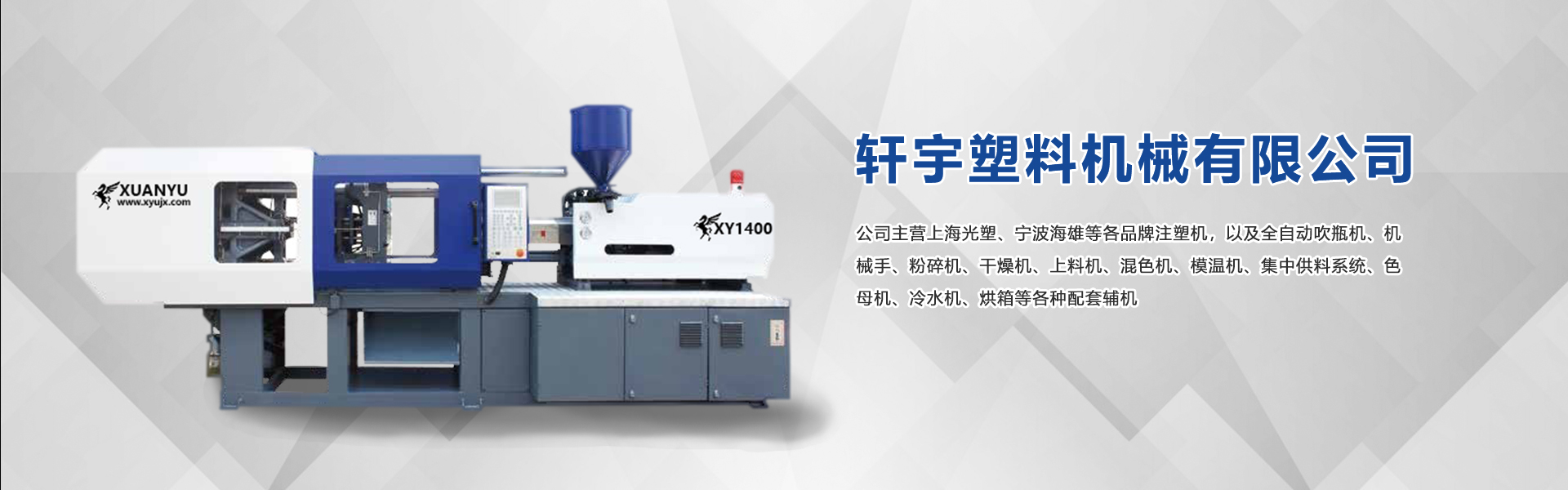 • 山東軒宇塑料機械有限公司位于水滸好漢之鄉--山東鄆城,公司主營上海光塑、寧波海雄等各品牌注塑機,以及全自動吹瓶機、機械手、粉碎機、干燥機、上料機、混色機、模溫機、集中供料系統、色母機、冷水機、烘箱等各種配套輔機。本公司同時提供塑機疑難咨詢,整機維修、大修等業務,注塑機、注塑機輔機各類配件齊全。